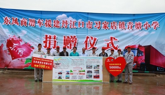 據(jù)介紹,在“東風(fēng)潤苗行動”首批援建的6所希望小學(xué)中,東風(fēng)商用車有限公司主動承擔了丹江口市習(xí)家店鎮(zhèn)青塘小學(xué)的建設(shè)任務(wù)。由于該校教學(xué)樓地基沉降,墻體傾斜開裂,被鑒定為D級危房。今年3月6日,師生被迫從教學(xué)樓中撤出,在由教師住房臨時改造的教室里上課,室內(nèi)擁擠,教學(xué)設(shè)施落后。根據(jù)“東風(fēng)潤苗行動”總體安排,結(jié)合青塘小學(xué)的實際需求情況,東風(fēng)商用車決定總體捐資108萬元建設(shè)東風(fēng)潤苗行動“東風(fēng)商用車希望小學(xué)”,建設(shè)東風(fēng)希望校舍、東風(fēng)希望食堂、東風(fēng)希望圖書室,設(shè)立“東風(fēng)希望助學(xué)金”,配備“東風(fēng)希望校服”,開展“微公益”活動等,促進該校教學(xué)硬件和軟件的雙提升,全面改善辦學(xué)條件。