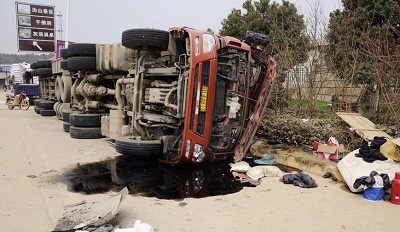 據(jù)車上師傅介紹,行駛過程中,一輛頂燈閃爍不止的路政執(zhí)法車緊追不舍,執(zhí)法車旁還有一輛民用越野車“保駕護航”。期間,路政執(zhí)法車數(shù)次將直徑約50厘米的傘狀鐵鉤拋向貨車。陳鄭紅望著報廢的大貨車。在距離朱良橋收費站還有1公里時,扔完鐵鉤后一直與貨車并行的路政執(zhí)法車和越野車再次逼到貨車前方,遠遠地橫在了正前方車道,所停之處距離收費站約200米。劉弟德眼疾手快,立即往左打方向盤駛向逆行車道。貨車車長13米,碼貨后17米,加上本來就超載,拐彎時,離心力急劇加大,“轟”的一下,車身朝左側翻,并在慣性的作用下往前滑行十多米。劉弟德的家屬給記者看當時從路政執(zhí)法的車輛里面扔出來,砸到貨車引擎蓋的鐵鉤的照片。車禍發(fā)生后,剛剛還緊追不舍的路政執(zhí)法車已消失得無影無蹤。在車禍中身亡的劉弟德正值壯年,一家老小全靠他養(yǎng)活,這趟貨如果不多裝一點根本賺不到錢。
