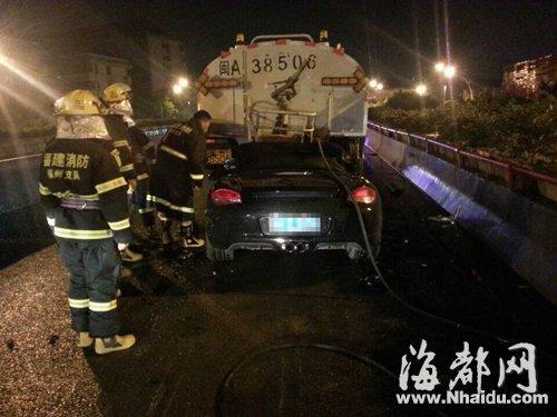 昨日凌晨1點半左右,福州二環(huán)路黎明高架橋上,一輛灑水車正在沖洗路面,后方一輛保時捷跑車突然撞上來,車頭鉆進灑水車底。灑水車是最常見的一種環(huán)衛(wèi)車,在路上常??梢钥吹綖⑺嚲G化灑水。一般來說灑水車灑水的時候會打開音樂喇叭,打開警示燈等,在路肩位置緩慢行進灑水。來往車輛應(yīng)該注意避讓。