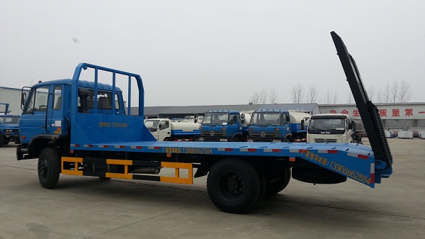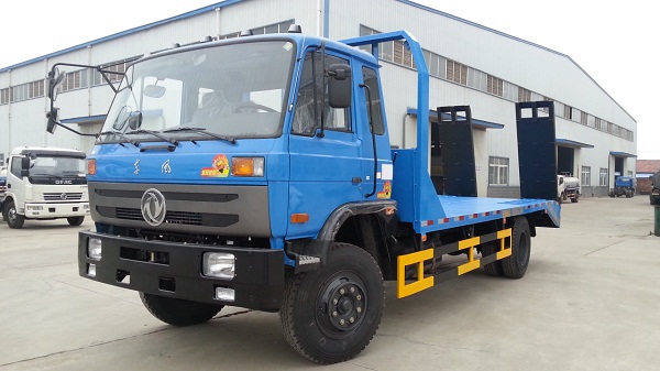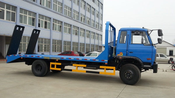昨天平板運(yùn)輸車廠家介紹了高性價(jià)比的解放1163單橋國(guó)四平板運(yùn)輸車。平板運(yùn)輸車是專門用來(lái)拉挖掘機(jī)鉤機(jī)叉車等大型機(jī)械設(shè)備和工程機(jī)械的專用汽車。區(qū)別于一般的貨車載貨載重分布均勻的特點(diǎn),拿平板運(yùn)輸車最常見(jiàn)的用途拉挖掘機(jī)來(lái)說(shuō),挖掘機(jī)上下時(shí)必須要爬梯才能方便上下。挖掘機(jī)上下的時(shí)候?qū)ε捞莺驼嚨臎_擊非常大,所以必須要求爬梯的強(qiáng)度非常強(qiáng)才能經(jīng)久耐用。爬梯一般是用手動(dòng)舉起和放下,所以平板運(yùn)輸車廠家湖北俊龍專用汽車有限公司的平板運(yùn)輸車產(chǎn)品都在爬梯上裝上兩根彈簧,而且對(duì)彈簧、彈簧支架的尺寸和位置通過(guò)精確計(jì)算設(shè)計(jì)制作,一個(gè)人就可以很方便的舉起和落下。平面承重部分因?yàn)橥诰驒C(jī)??康奈恢檬侵饕?fù)重區(qū),我們?cè)诔兄貐^(qū)加強(qiáng)方筒鋼鋪放密度,確保經(jīng)久耐用。目前是平板運(yùn)輸車銷售的旺季,也正時(shí)值柴油車尾氣排放國(guó)三和國(guó)四切換的時(shí)候,很多平板運(yùn)輸車用戶苦于沒(méi)有合適的國(guó)四平板運(yùn)輸車產(chǎn)品,昨天平板運(yùn)輸車廠家湖北俊龍專用汽車有限公司為您推薦了一款一汽解放出品底盤的平板運(yùn)輸車產(chǎn)品,但是得益于中國(guó)二汽東風(fēng)公司的市場(chǎng)占有率、服務(wù)站分布、配件的普遍性以及維護(hù)保養(yǎng)保修的方便快捷,加上價(jià)格優(yōu)勢(shì)還有上牌所需資料的靈活性,部分用戶對(duì)東風(fēng)的產(chǎn)品情有獨(dú)鐘。鑒于此平板運(yùn)輸車廠家介紹一款東風(fēng)國(guó)四單橋平板運(yùn)輸車,參數(shù)如下: