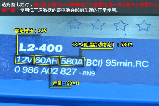 CCA(低溫啟動(dòng)電流):表示發(fā)動(dòng)機(jī)在低溫啟動(dòng)時(shí),蓄電池可向起動(dòng)機(jī)提供的起動(dòng)電流。該數(shù)值對于北方寒冷地區(qū)的車輛尤為重要,而對于南方溫度較高的地區(qū)則不需太過關(guān)注。