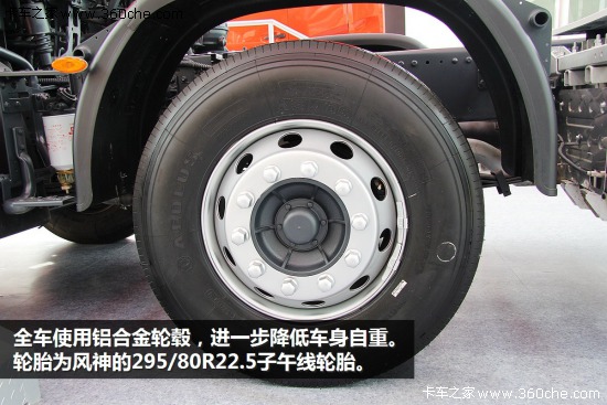 該車搭載東風(fēng)風(fēng)神DDi75S型發(fā)動機,最大功率為315馬力。變速器則采用一臺法士特9JS135型手動變速器。通過采用鋁合金油箱和輪轂等一系列輕量化設(shè)計,使得其整車自重達(dá)到7.2噸。