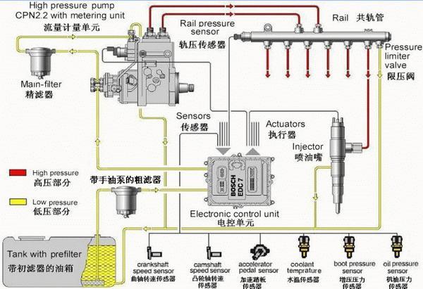 一、高壓共軌技術(shù)讓燃燒更充分,提高燃油利用率。高壓共軌是將噴油泵和共軌系統(tǒng)連接,保證共軌管道及其連接的噴油嘴保持穩(wěn)定高壓(約1600帕),燃油電控系統(tǒng)單獨控制噴油嘴開啟和關(guān)閉,確保在最正確時間點四個噴油嘴提供完全相同的油壓,以及精確的噴油量,極大提高發(fā)動機的工作效率。