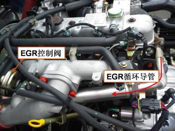 三、找EGR系統(tǒng)的廢氣循環(huán)導管和EGR閥門。廢氣循環(huán)導管與排氣管相連,取一部分廢氣再循環(huán),另一部分廢氣則從排氣管排出。