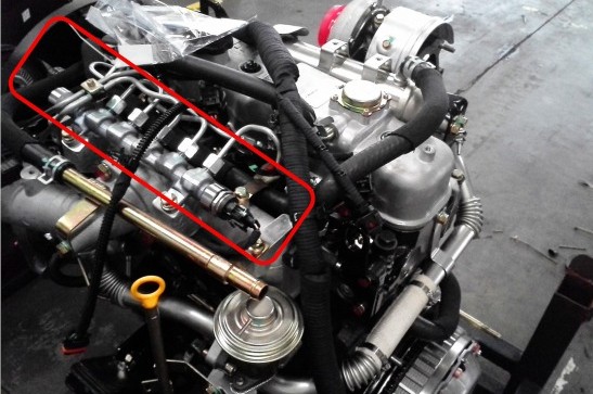 發(fā)動(dòng)機(jī)正面照,紅線框中就是公共供油管