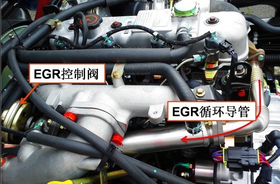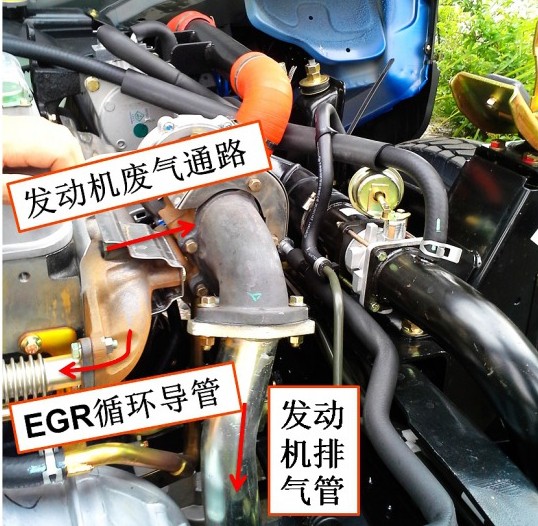 二、找EGR系統(tǒng)的廢氣循環(huán)導(dǎo)管和EGR閥門(mén)。廢氣循環(huán)導(dǎo)管與排氣管相連,取一部分廢氣再循環(huán),另一部分廢氣則從排氣管排出。