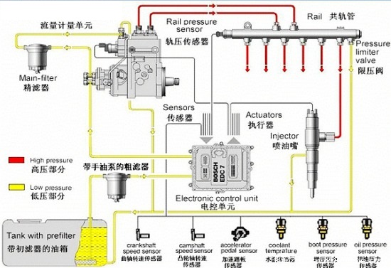 柴油汽車排放污染物的產(chǎn)生原因各異,CO、HC、PM主要是因?yàn)槿紵怀浞謱?dǎo)致,NOx是因?yàn)闅飧兹紵郎囟冗^(guò)高導(dǎo)致,簡(jiǎn)而言之,達(dá)標(biāo)國(guó)IV有四個(gè)要素:一是提高發(fā)動(dòng)機(jī)燃燒效率(高壓共軌),二是提高氧氣利用率(增壓中冷),三是減少?gòu)U棄氮氧化合物含量(EGR系統(tǒng)),四是有針對(duì)性的降低有害氣、固體排放(DOC+POC或者SCR)。