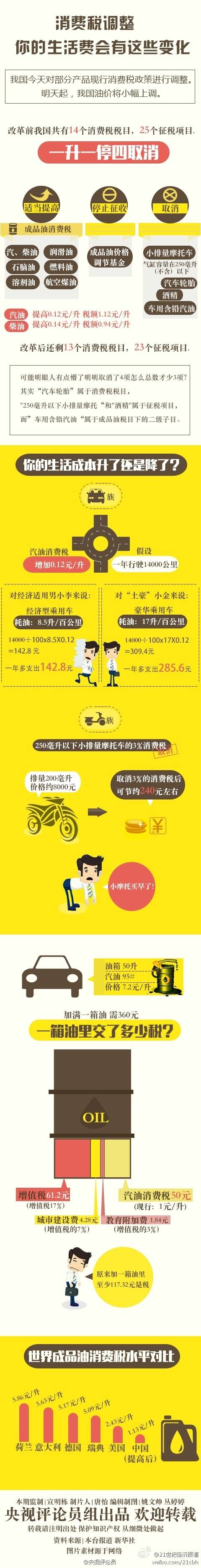 為何此時調整消費稅?財政部、國家稅務總局有關負責人表示,節(jié)能減排工作任務艱巨。隨著機動車保有量的快速增長,耗油量急劇增加,燃油污染也日益嚴重,相當一部分城市受到較大范圍、較長時間的嚴重霧霾天氣困擾。“適當提高成品油消費稅,不僅可以促進大氣污染治理,減少污染物排放,合理引導消費需求,促進石油資源節(jié)約利用,而且有利于促進新能源產業(yè)的發(fā)展?!?BR>  對此,中宇資訊分析師張永浩對新京報記者表示,“從本次消費稅的調整措施來看,它仍然沒有觸及社會最關心的部分,消費稅的征收方式并沒有調整,商品消費稅仍然是價內稅,這就說明稅費重復計征的問題仍然沒有解決,并且消費稅征收環(huán)節(jié)也并沒有發(fā)生變化,也就是說可能將繼續(xù)對生產批發(fā)企業(yè)施加成本壓力?!睆堄篮普J為,本次消費稅調整只是微調,后期還將有更多的調整舉措出臺。