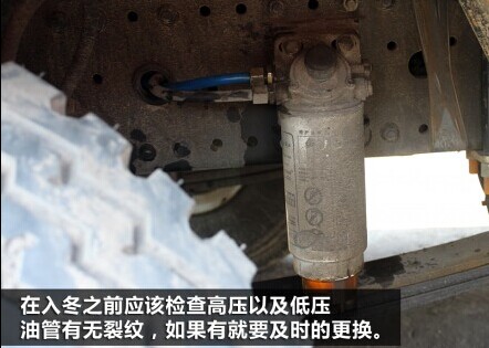 入冬前仔細(xì)檢查高壓以及低壓油管有無裂紋和老化,如有發(fā)現(xiàn)及時(shí)更換。