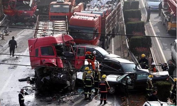 你或許會問,后面的大車為什么不停下來?他太想把車停下來了!可是他停得下來嗎?核載九噸卻拉五十噸、核載十九噸卻實載九十噸的大貨車們你又不是沒見過。。。在這種情況下,尤其是下坡路,敢問是你你也停不下來呀。