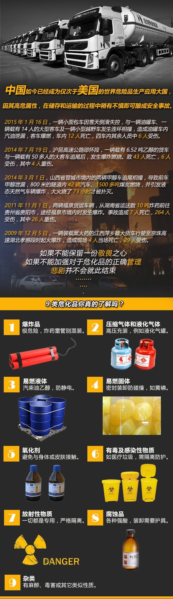 中國如今已經(jīng)成為僅次于美國的世界危險品生產(chǎn)應(yīng)用大國,因其高危屬性,在儲存和運(yùn)輸?shù)倪^程中稍有不慎即可釀成安全事故。正確認(rèn)識?;罚莆湛茖W(xué)的倉儲及運(yùn)輸安全技巧,才能避免災(zāi)難的再次發(fā)生。