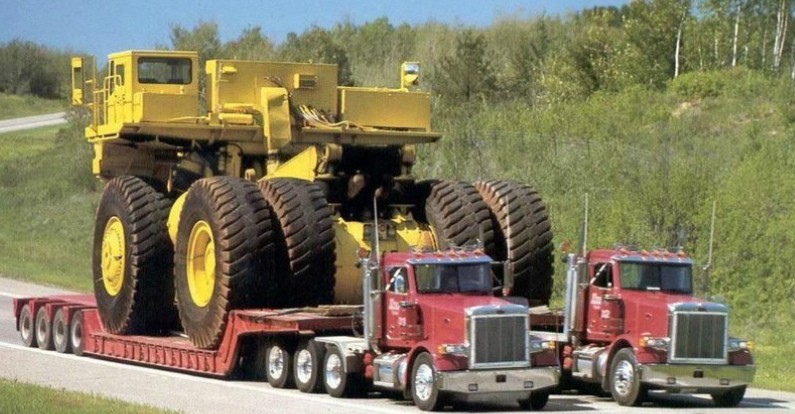 上圖這個巨無霸工程車的個頭可不小。需要蘭格后四軸,前四軸8X6牽引頭驅(qū)動,