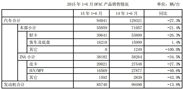 報(bào)告指出,上半年,東風(fēng)汽車(chē)銷(xiāo)車(chē) 9.4萬(wàn)輛,同比下降 27.3%,完成年度目標(biāo)的 36%;銷(xiāo)售發(fā)動(dòng)機(jī) 85740 臺(tái),完成年度目標(biāo)的 42%;實(shí)現(xiàn)營(yíng)業(yè)收入 78.02 億元,完成年度目標(biāo)38%。