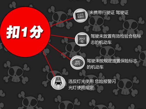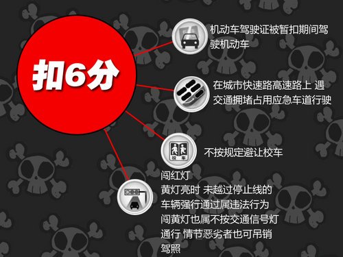 扣12分的嚴(yán)重違法項(xiàng)目: