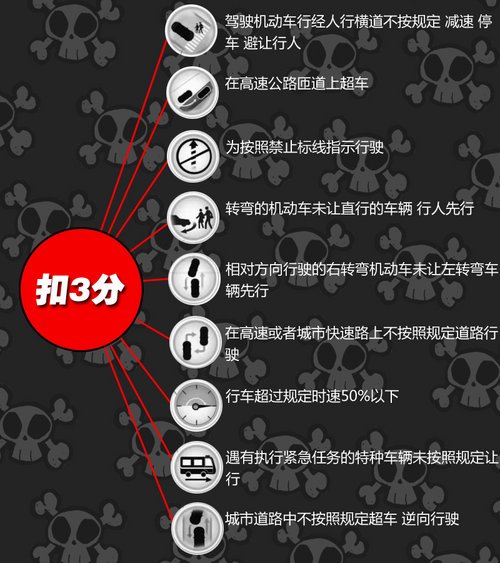 機(jī)動(dòng)車駕駛?cè)擞邢铝羞`法行為之一,一次記3分: