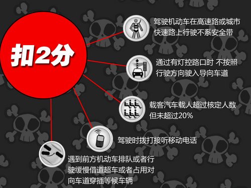機(jī)動(dòng)車駕駛?cè)擞邢铝羞`法行為之一,一次記2分: