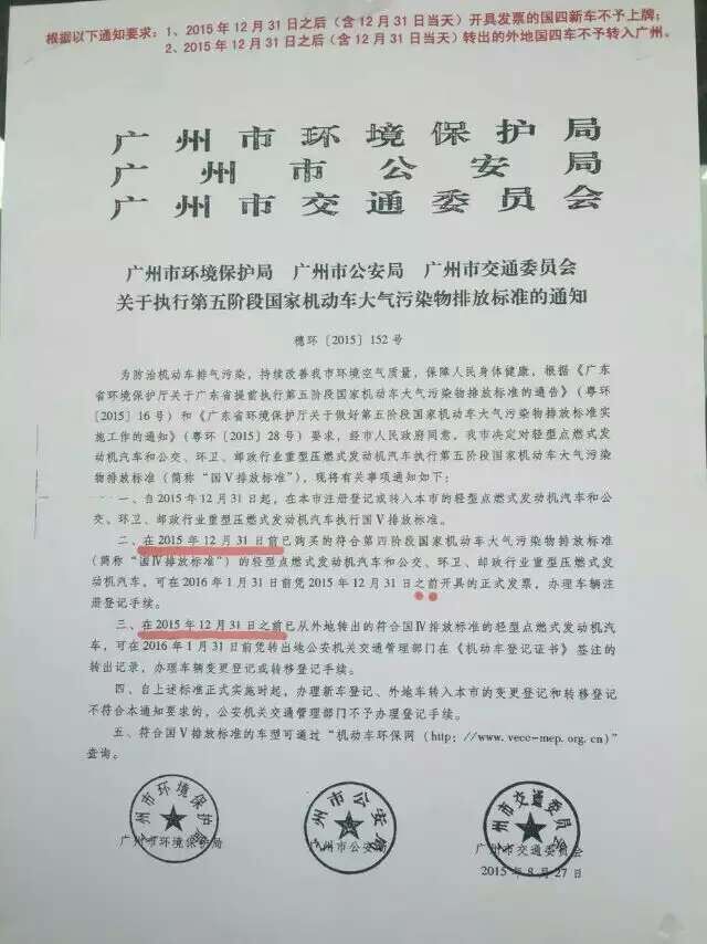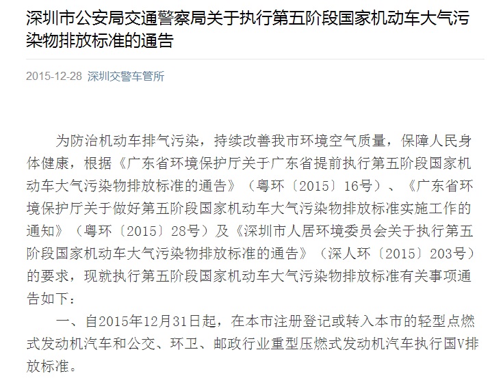 下面是深圳和廣州的國五全面實現(xiàn)的通告。今天是2015年12月30日,也就是最后一天了。