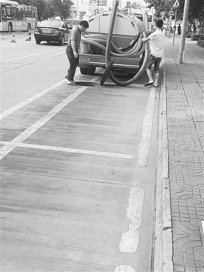 吸糞車往雨水井偷排糞便 ??谂潘Q可向城管舉報