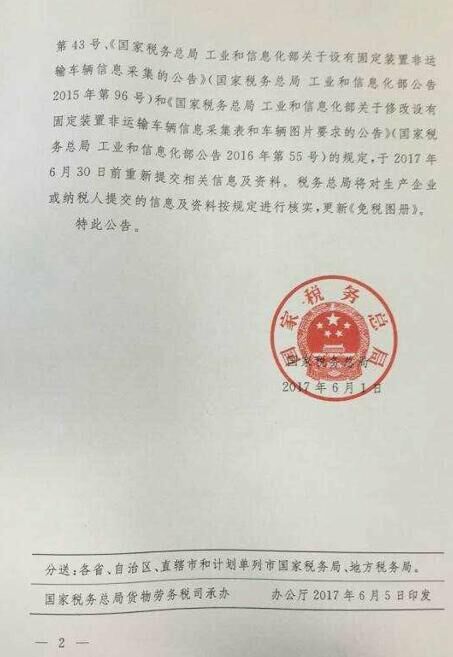二、生產(改裝)或進口的車輛符合本公告第一條規(guī)定的,按《國家稅務總局 工業(yè)和信息化部關于設有固定裝置非運輸車輛信息采集的公告》(國家稅務總局 工業(yè)和信息化部公告2015年第96號)規(guī)定提交信息、照片及資料掃描件。