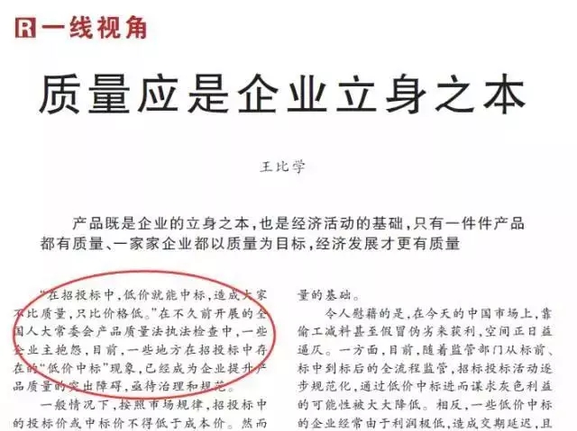 這是人民日?qǐng)?bào)繼5月31日之后,罕見地再次刊文談"最低價(jià)中標(biāo)"問題。不到一月內(nèi)被三次點(diǎn)名,惡意低價(jià)競標(biāo)今年有望得到遏制!