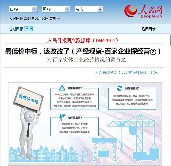 公司新聞當(dāng)前位置:首頁> 新聞資訊 >> 公司新聞 >> 人民日報再發(fā)文:“最低價中標(biāo)”不改,談什么工匠精神、中國制造!