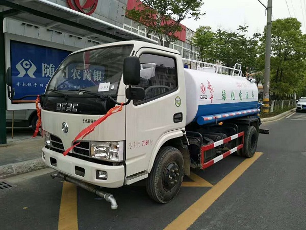 東風(fēng)小多利卡國五5噸灑水車5立方灑水車上裝配置:罐體有效容積為5立方灑水車,帶泵,罐體鋼板為4MM碳鋼,罐體及整車外形尺寸按照公告。整車前沖、后灑、側(cè)噴、帶65消防接口,后平臺帶泡不帶門,前封頭帶水位計,后平臺主管路帶1寸澆花接口,后爬梯。平臺后部帶小安全告知牌:“隨時停車,注意安全”,帶兩根水管及陰陽端。罐體顏色:上白色下東風(fēng)蘭,罐體兩側(cè)噴“綠化噴灑車”,貼反光標(biāo)示。