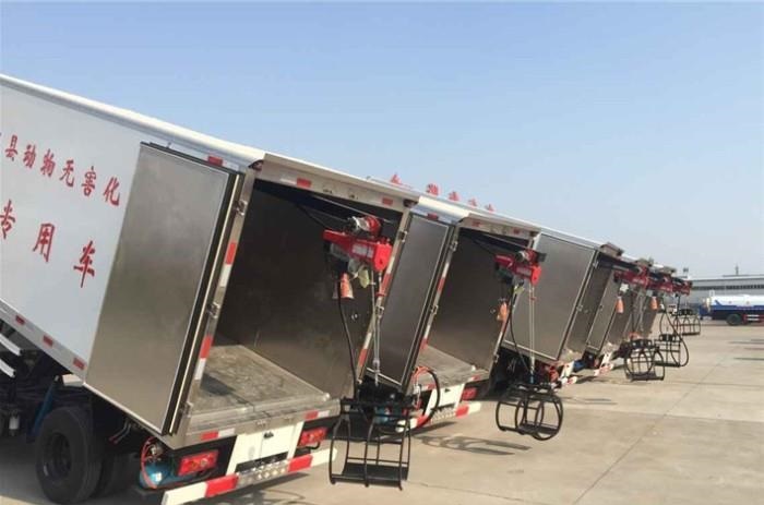畜禽無公害處理車采用保溫車?yán)洳剀囁玫谋叵潴w。畜禽無公害處理車保溫箱體具高新技術(shù):