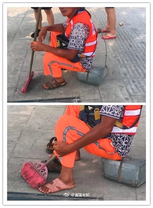 2017年7月29日,成都室外常有40度的高溫,炎熱無比!網友在動物園附近拍到一位環(huán)衛(wèi)工人大爺,借著工作間隙在樹蔭下休息。整個人都被曬黑,當然脫下涼鞋后,看的更讓人心酸…