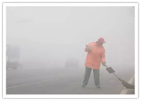 18遇到惡劣天氣,學校可以停課,市民可以不出門,而環(huán)衛(wèi)工則沒有辦法避開,甚至連保護措施都沒有,最多只是戴上口罩而已。2014年3月24日早晨,一名環(huán)衛(wèi)工在能見度不足百米的遼寧省大連市金州新區(qū)拓展零號路上保潔。
