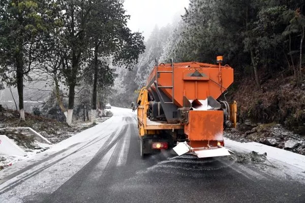 融雪撒布機(jī)正在進(jìn)行撒鹽融雪作業(yè)