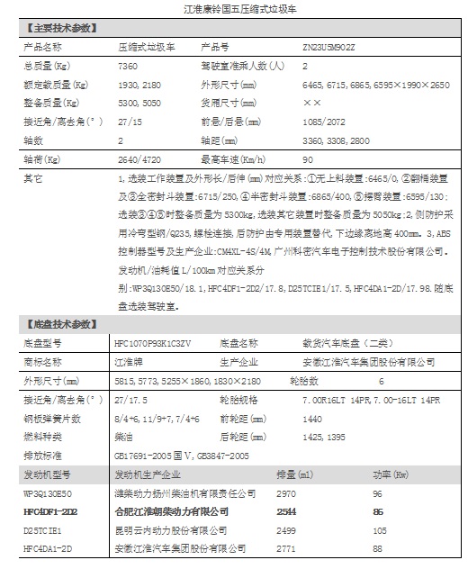 下面是江淮康鈴壓縮式垃圾車(chē)的主要技術(shù)參數(shù):
