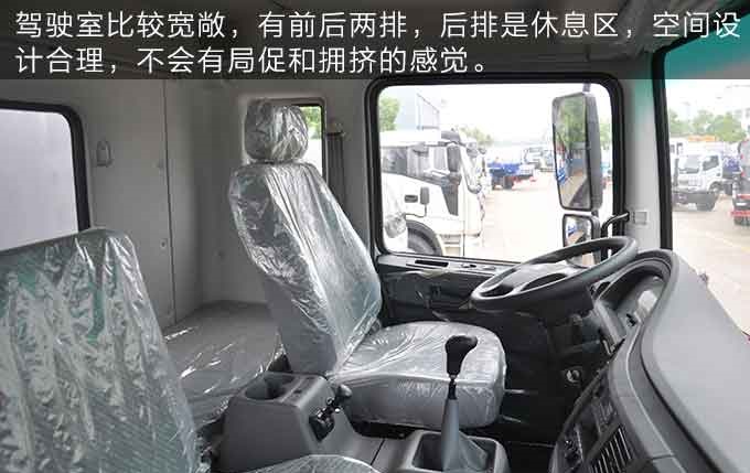 打開東風(fēng)多利卡D9吸污車的車門,可以看到這款車的駕駛室比較寬敞,有前后兩排,前排能同時坐下三人,后排是休息區(qū),空間設(shè)計合理,不會有局促和擁擠的感覺。因為底盤較高,所以,駕駛室的視野比較開闊。