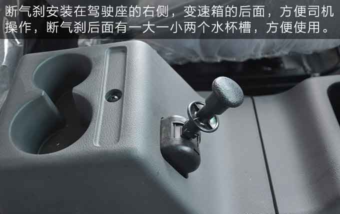 斷氣剎安裝在駕駛座的右側(cè),變速箱的后面,方便司機操作,斷氣剎后面有一大一小兩個水杯槽,方便使用。