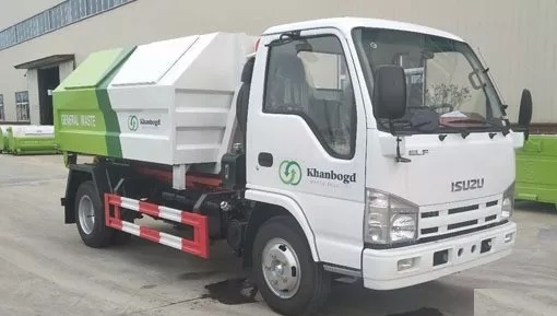 下面勾臂式垃圾車廠家給大家介紹一款慶鈴五十鈴輕卡勾臂式垃圾車。