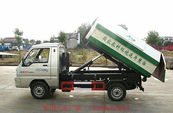 圖為車廂可卸式垃圾車自卸時狀態(tài)(后蓋打開)