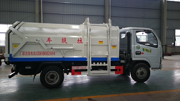 東風小多利卡后裝壓縮式垃圾車:此款壓縮式垃圾車軸距為3308,底盤較小,車箱容積為5-6立方,壓縮車后帶掛桶翻轉架,可以掛兩個240升的鐵桶或塑料桶,常規(guī)生活垃圾2.5倍左右壓縮比,壓縮后相當于可以裝15立方的垃圾,可裝240升垃圾桶60-70桶,適合垃圾桶較多的小區(qū)。