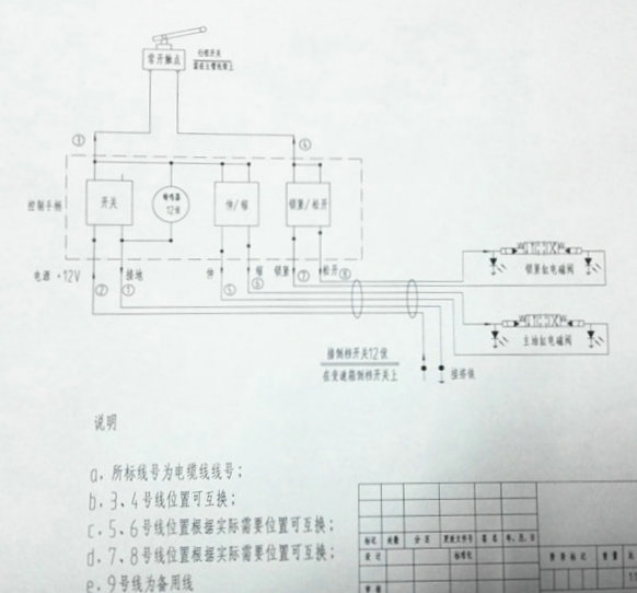 從以下的電器原理圖可知:只有行程開關(guān)閉合后,控制盒才能控制鎖油缸的鎖緊和松開,當(dāng)主臂舉升后,行程開關(guān)復(fù)位,開關(guān)觸點(diǎn)斷開,控制盒不能控制鎖油缸的動作,起到保護(hù)作用,防止誤操作。