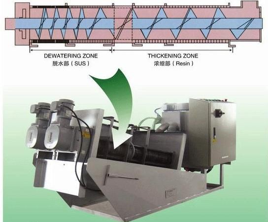 1、濃縮:當(dāng)螺旋推動(dòng)軸轉(zhuǎn)動(dòng)時(shí),設(shè)在推動(dòng)軸外圍的多重固活疊片相對移動(dòng),在重力作用下,水從相對移動(dòng)的疊片間隙中濾出,實(shí)現(xiàn)快速濃縮。