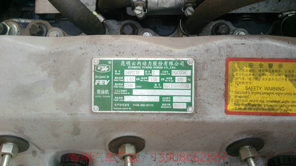 讓人吃驚的是該款東風國六藍牌平板運輸車搭配了云內動力 D40TCIF型國六柴油發(fā)動機,標識功率為140KW(190馬力);可謂是刷新了藍牌平板運輸車的馬力的新紀錄。通過查詢得知,該款國六發(fā)動機為4102X120mm缸徑,直列四缸四氣門,電控共軌系統(tǒng)HEGR+DOC+DPF+SCR+ASC加持得到國六排放標準。
