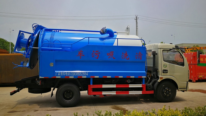 吸污車(chē)專用部分由取力器、傳動(dòng)軸、真空吸污泵、壓力罐體、液壓部分,管網(wǎng)系統(tǒng)、真空壓力表、視糞窗、洗手裝置等組成,隨車(chē)配置大功率真空吸污泵和優(yōu)質(zhì)液壓系統(tǒng),罐體封頭一次壓鑄成型、罐體可后開(kāi)、雙頂自卸。罐內(nèi)污物可通過(guò)后蓋直接傾倒,具有真空度高(比吸糞車(chē)的吸力更大)、噸位大、效率高、用途更廣泛的特點(diǎn)。