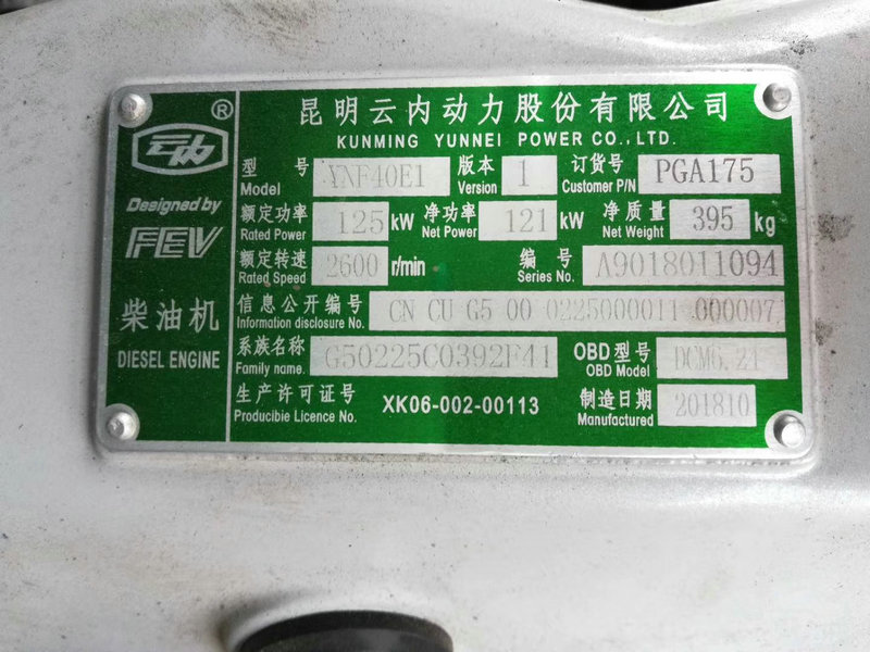 1,正宗云內170馬力發(fā)動機(YNF40E1)國五柴油發(fā)動機;