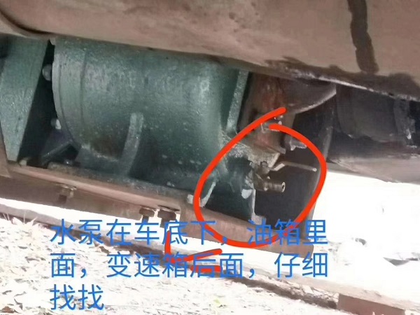首先就是水泵,水泵都設(shè)計(jì)的有排水閥位于水泵下部最低點(diǎn)位置。打開(kāi)排水閥可排凈泵內(nèi)積水。水泵的位置在車底,大梁下部,變速箱后部。