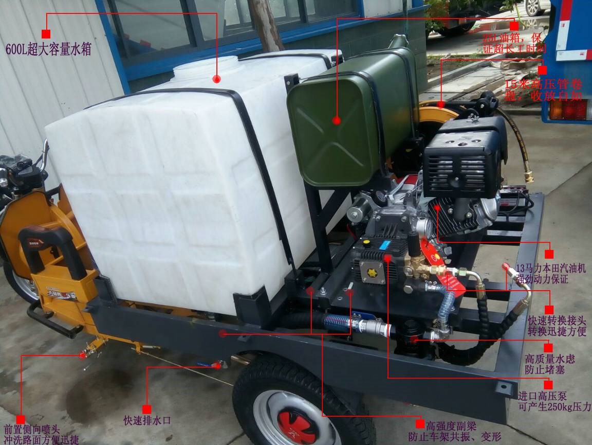 電動(dòng)三輪高壓清洗車是吸收先進(jìn)清洗機(jī)理念,為環(huán)衛(wèi)、物業(yè)、保潔公司專門設(shè)計(jì)的一款簡(jiǎn)易移動(dòng)式?jīng)_洗車。產(chǎn)品采用優(yōu)質(zhì)電動(dòng)三輪車底盤,裝配專業(yè)的高壓清洗機(jī)和水泵,使用方便快捷。內(nèi)置500升專用塑料水箱,永久防銹,是城市街道、物業(yè)小區(qū)保潔性價(jià)比最高的沖洗車產(chǎn)品!