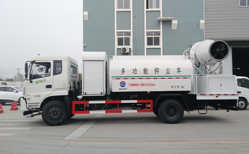 而高壓霧炮噴射的水霧顆粒度可以達(dá)到微米級(jí),在霧霾天可以進(jìn)行液霧降塵,分解淡化空氣中的顆粒物濃度。這款車的霧炮機(jī)射程可達(dá)30米,與之搭配的風(fēng)機(jī)功率為3kW,水泵功率為2.2kW,噴霧流量為16-26L/min。另外還配套一個(gè)8kW的發(fā)電機(jī)。