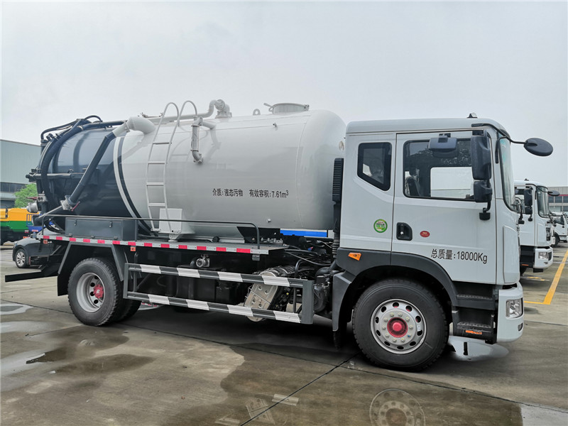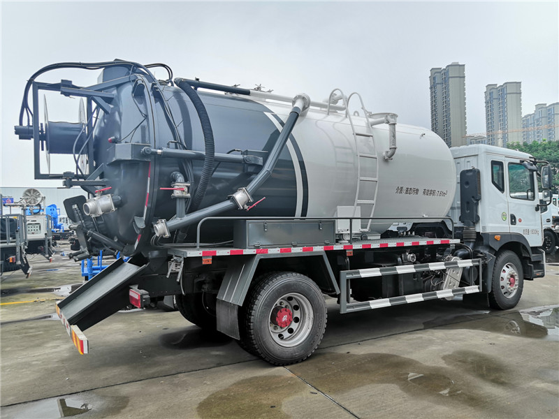 清洗吸污(糞)車專用裝置配置:德國高壓泵(16mpa)/ 雙耀高壓泵(24 mpa) ,億豐/偉業(yè)/威龍等吸污(吸糞)車專用真空泵,常規(guī)配備10個(gè)高壓沖頭,具有自動(dòng)回位功能的收放卷盤,60米長(zhǎng)的高壓管(可根據(jù)需要加長(zhǎng)) ,帶工具箱,加粗型污水位顯示管、清水位顯示管,方便操作人員掌握罐內(nèi)污水、清水的水量,人性化地加裝了防溢閥防止吸污時(shí)罐內(nèi)污水裝滿后進(jìn)入到抽排真空的管道中對(duì)真空泵的損壞,管道回路由水氣分離器、油氣分離器、四通換向閥、真空泵、管道等組成,吸污(糞)罐尾部有自流口、后蓋液壓開啟鎖緊裝置更能有效地保證罐體的密封性,排污方式可通過自流口排放或打開后蓋排放,罐體的自卸功能可使排污更快更干凈。