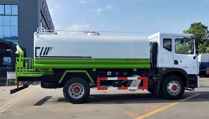 上裝配置:罐體容積為12立方灑水車,罐體鋼板為4mm碳鋼Q235材質,罐內隔板具有防波作用,以減輕汽車行駛時罐體液體沖擊,罐體及整車外形尺寸按照公告。帶大功率專用灑水泵,泵可自吸自排,整車前沖、后灑、側噴、帶65消防接口,后平臺帶綠化灑水炮,灑水炮可全方位旋轉,可連續(xù)調成直沖狀、大雨、小雨、毛毛雨;前封頭帶水位計,后平臺主管路帶1寸澆花接口,后爬梯。平臺后部帶小安全告知牌:“隨時停車,注意安全”,帶兩根水管及陰陽端。罐體顏色:上白/下藍,銀灰/銀藍,罐體兩側噴“灑水車、綠化噴灑車”字樣,貼反光標示。灑水車可加裝前沖后灑氣動閥駕駛室控制、可加裝霧炮機組發(fā)電機組噴霧降塵裝置、車頭可加裝推雪雪鏟、雪滾裝置街道、公路除雪等。
