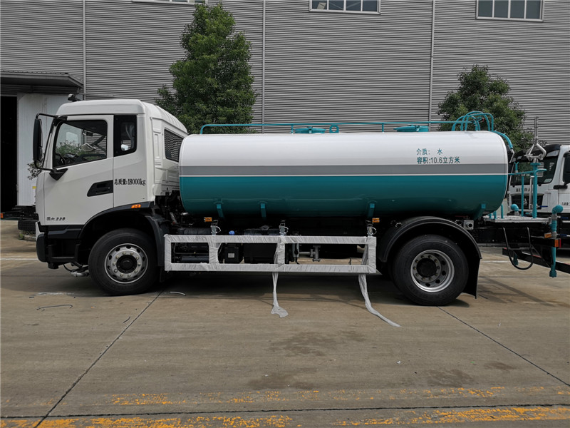 國六東風天錦灑水車配置:東風天錦灑水車,4700軸距,B6.2NS6B210發(fā)動機。康明斯210馬力,DF6S900變速箱,4.5噸前橋,9噸后橋,275/80R22.5 18PR輪胎,空調(diào),ABS,電動玻璃,下面是國六東風天錦KR15方灑水車照片: