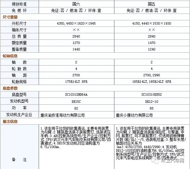 長(zhǎng)安勾臂式垃圾車(chē)國(guó)五與國(guó)六技術(shù)參數(shù)的差別