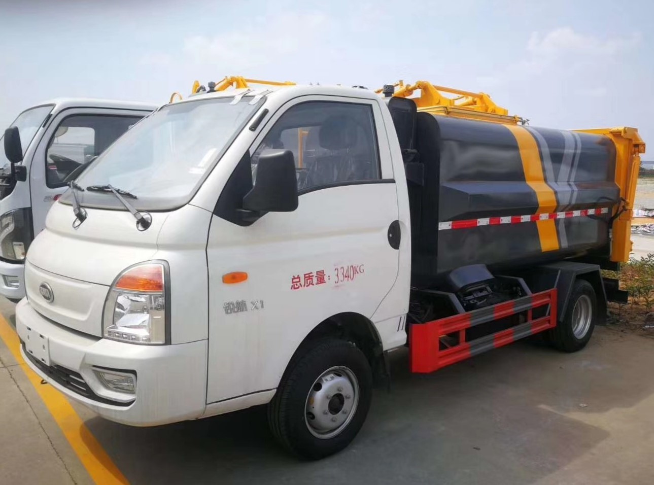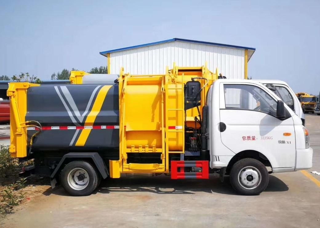 2、江淮康鈴X1: 汽油車配置:康鈴X1,單排,柳州五菱汽油機(jī)LJ4A15Q6(柳汽113馬力)國六汽油發(fā)動(dòng)機(jī),星銳5檔變速箱,3噸后橋,185R15后雙胎,130*6大梁,油剎,原廠空調(diào)。制作后掛桶高位翻轉(zhuǎn)無泄漏型自裝卸式垃圾車時(shí),整車外形尺寸:4865/4585X1580/1810X2250mm。
