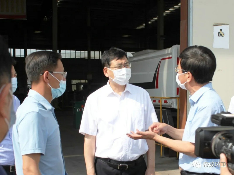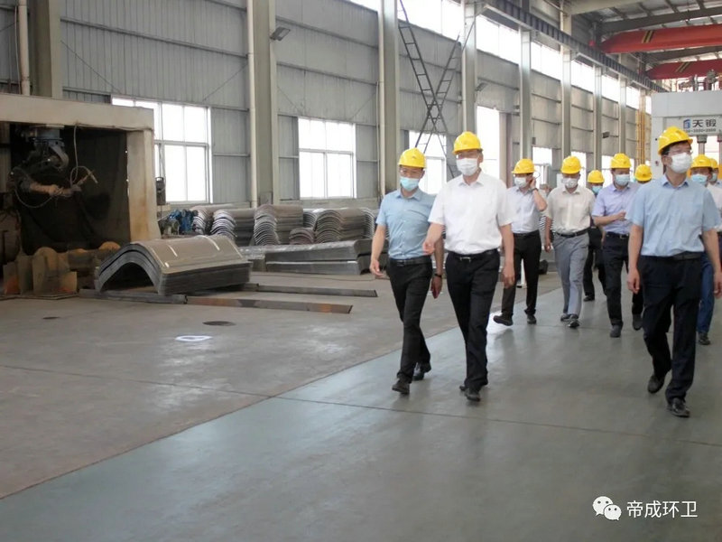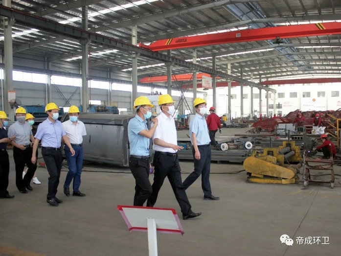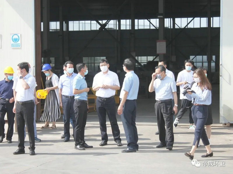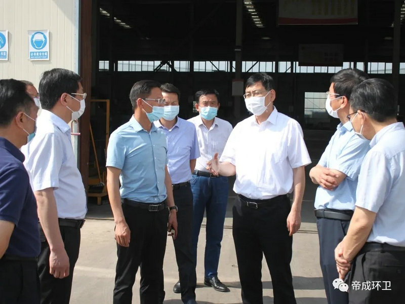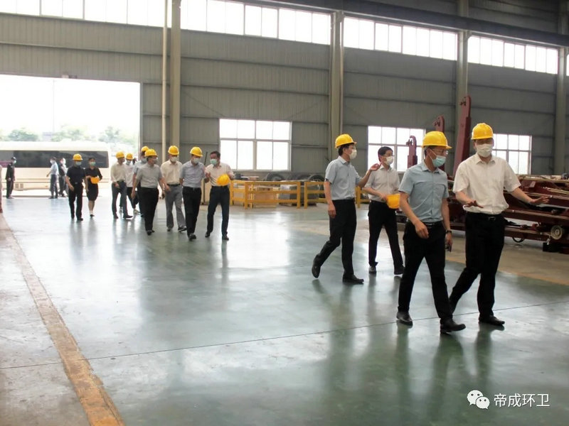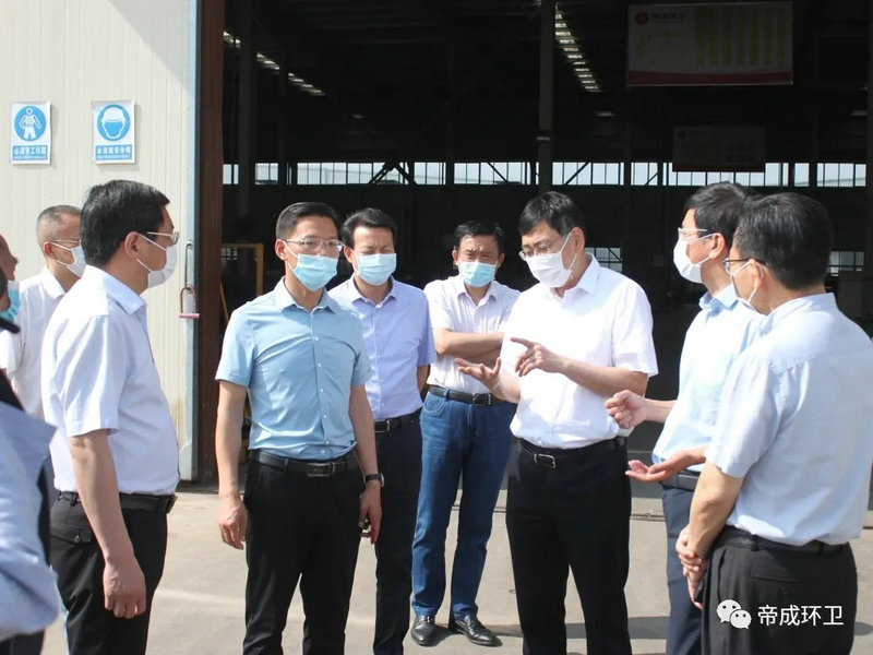 2020年5月26日上午9點,隨州市市委書記陳瑞峰、市領導林常倫、劉宏業(yè),在市發(fā)改委、市經(jīng)信局、市政務服務和大數(shù)據(jù)局主要負責同志的陪同下蒞臨湖北帝成環(huán)衛(wèi)科技有限公司參觀視察,調(diào)研全市優(yōu)化營商環(huán)境工作及疫后復工復產(chǎn)工作情況。